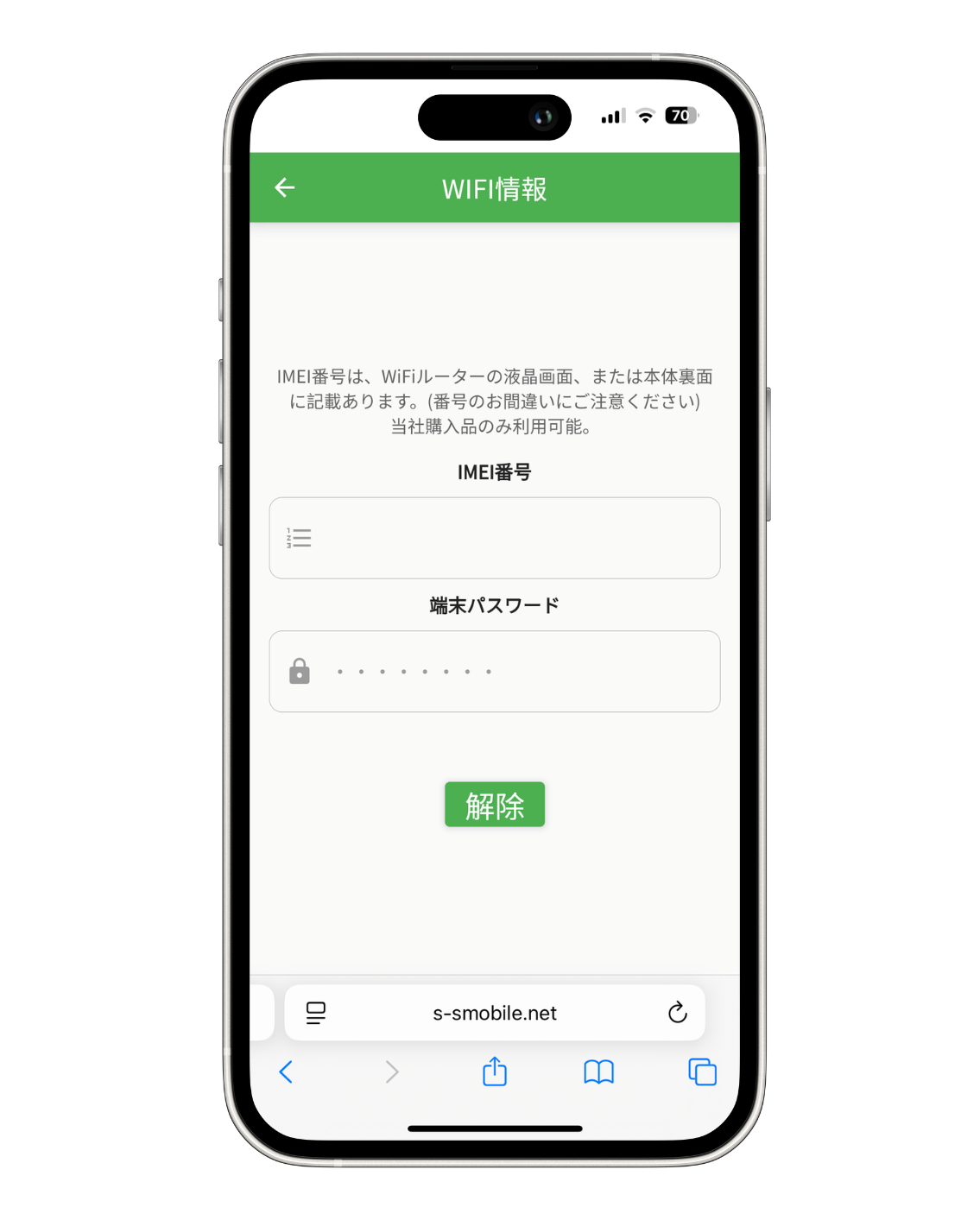 After logging in, select “Wi-Fi Service” from your My Page menu and open the “Wi-Fi Information” screen.